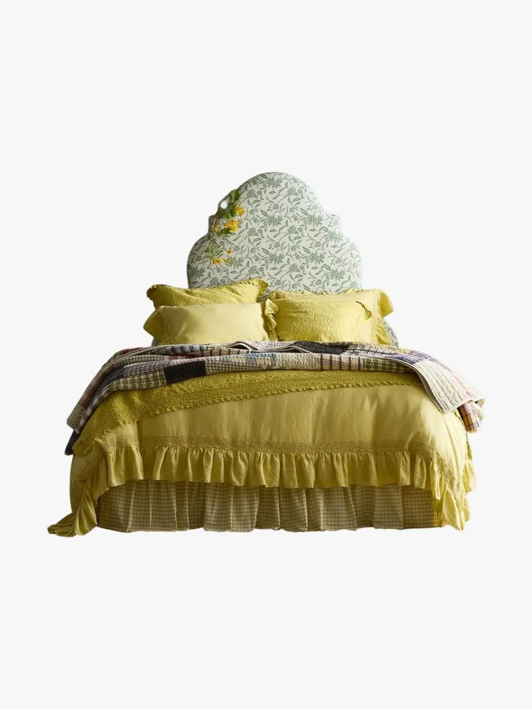 The sunny yellow ruffles on this GreenRow bed skirt can completely transform a bed. It’s pre-washed, so you can dress your bed right after this new arrival comes to your door. Layer it with a ruffled duvet cover, ideally one with some lace trim for ultimate loveliness.
